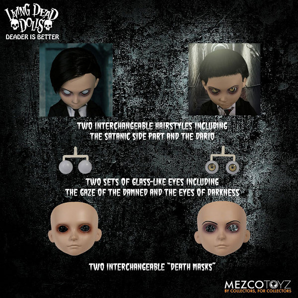 新たなダミアンには、交換可能な2種の“デスマスク”フェイスパーツ、そしてリアルなガラス調の素材を使用して再現された眼球は通常と白目の2種が付属。